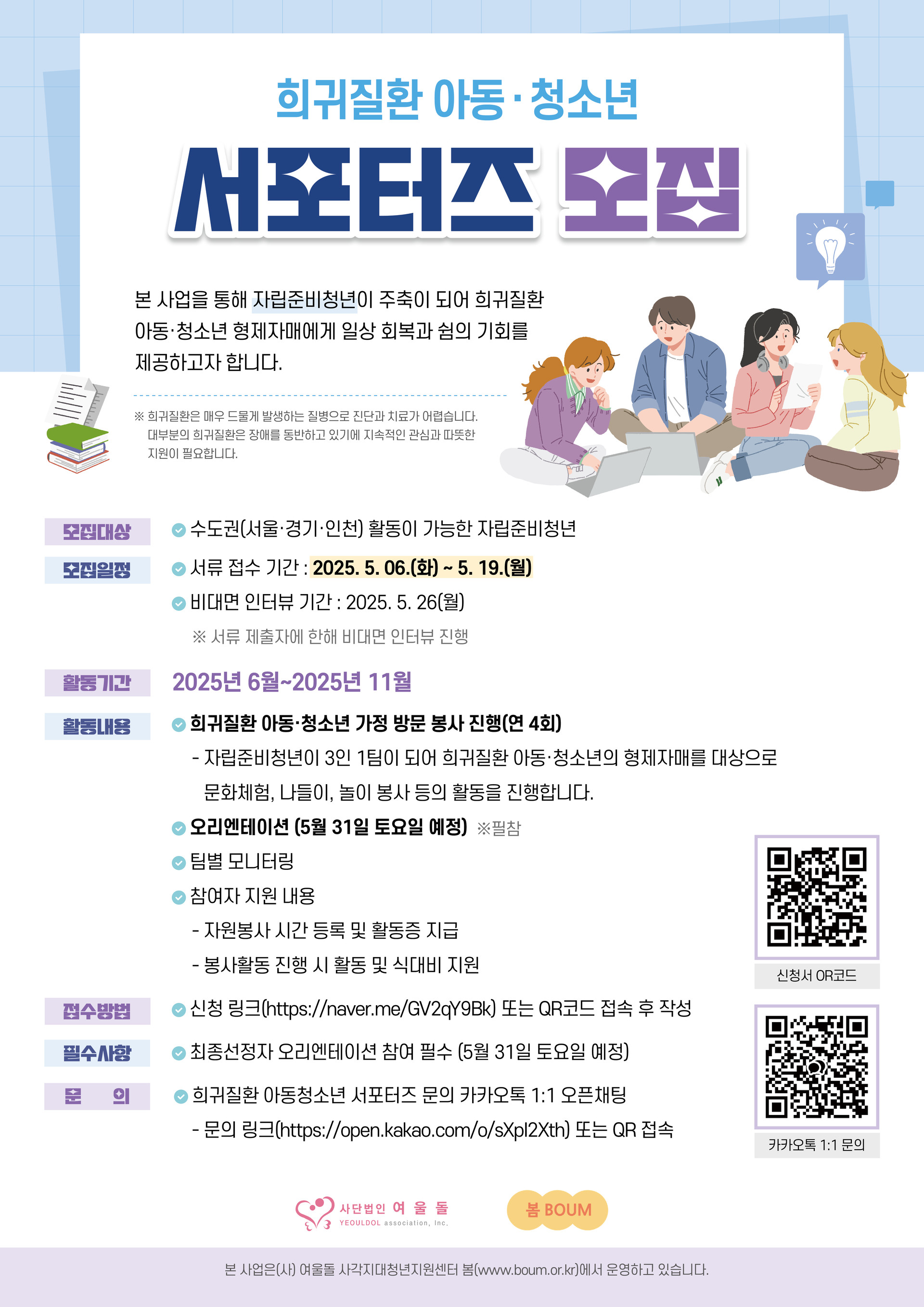 희귀질환 아동·청소년 서포터즈 모집